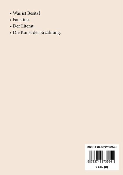 Inhaltsverzeichnis: Imaginäre Brücken. Was ist Besitz? Faustina. Der Literat. Der Literat als Dilettant. Der Literat als Psycholog. Der Literat als Tribun. Der Literat als Schöngeist. Der Literat als Apostel. Die Frau als Literat. Ergebnisse. Die Kunst der Erzählung. Neuausgabe. Herausgegeben von Karl-Maria Guth. Berlin 2020.