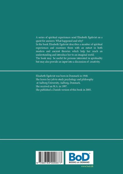 A series of spiritual experiences send Elisabeth Egekvist on a quest for answers: What happened and why?She embarks on journey that takes her through various university studies. Here she meets both modern and ancient thinkers like English anthropologist, Gregory Bateson, and Islamic mystic, Ibn 'Arabi, who provide insights that help her piece together an understanding of her development up to some point. After this she continues to form her own ideas on the importance of re-introducing an imaginal world which was abandoned and forgotten centuries ago, but now turns out to play a significant role in the development of mankind.In the book Elisabeth Egekvist describes a number of spiritual experiences and examines them with an outset in relevant theories.The book may thus be useful to people who ask questions about their own spiritual experiences, but may also provide an input into an academic discussion of learning and creativity.