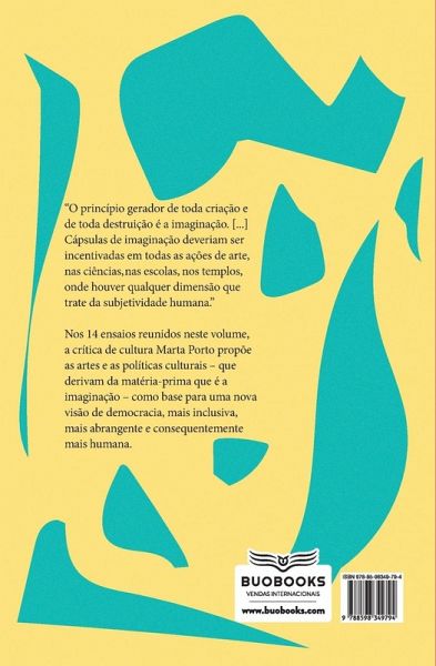 "O princípio gerador de toda criação, de toda destruição é a imaginação. [...] Cápsulas de imaginação deveriam ser incentivadas em todas as ações de arte, nas ciências, nas escolas, templos, onde houver qualquer dimensão que trate da subjetividade humana." Nos 14 ensaios reunidos neste volume, a crítica de cultura Marta Porto propõe políticas culturais que derivam da matéria-prima que é a imaginação como base para uma nova visão de democracia, mais inclusiva, mais abrangente e consequentemente mais humana.