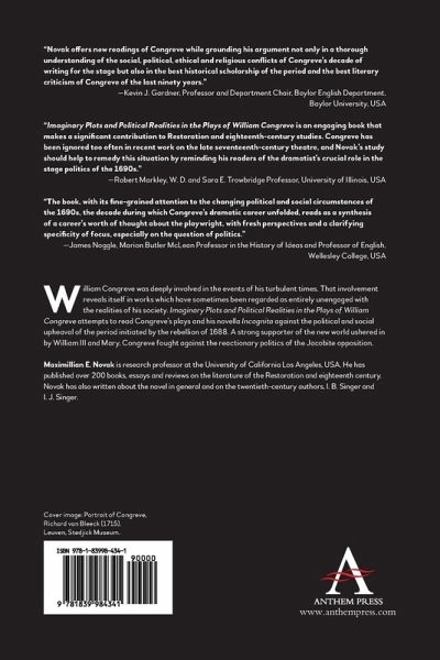 Imaginary Plots and Political Realities in the Plays of William Congreve is a study of the political and social milieu that informs William Congreve's writings. The book attempts to read Congreve's plays and his novella, Incognita, against the political and social upheaval of the period initiated by the rebellion of 1688.