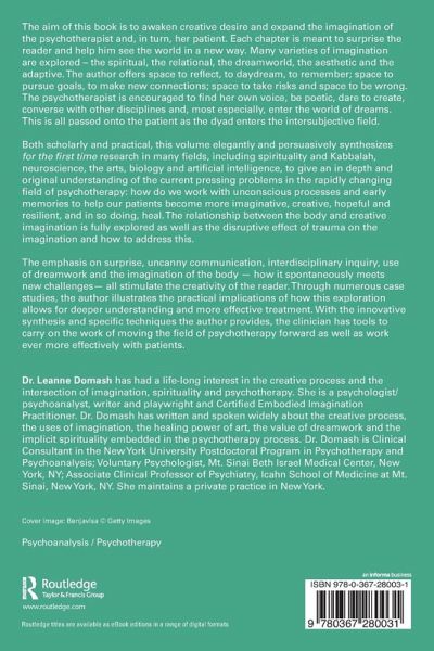 The aim of this book is to awaken creative desire and expand the imagination of the psychotherapist and, in turn, her patient. Each chapter is meant to surprise the reader and help him see the world in a new way. Many varieties of imagination are explored -- the spiritual, the relational, the dreamworld, the aesthetic and the adaptive.