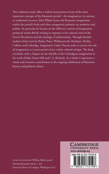 This ambitious study, first published in 2000, offers a radical reassessment of one of the most important concepts of the Romantic period - the imagination. In contrast to traditional accounts, John Whale locates the Romantic imagination within the period's lively and often antagonistic polemics on aesthetics and politics. In particular he focuses on the different versions of imagination produced within British writing in response to the cultural crises of the French Revolution and the ideology of utilitarianism. Through detailed analysis of key texts by Burke, Paine, Wollstonecraft, Bentham, Hazlitt, Cobbett and Coleridge, Imagination under Pressure seeks to restore the role of imagination as a more positive force within cultural critique. The book concludes with a chapter on the afterlife of the Coleridgean imagination in the work of John Stuart Mill and I. A. Richards. As a whole it represents a timely and inventive contribution to the ongoing redefinition of Romantic literary and political culture.