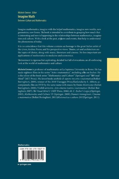 Imagine mathematics, imagine with the help of mathematics, imagine new worlds, new geometries, new forms. This book is intended to contribute to grasping how much that is interesting and new is happening in the relationships between mathematics, imagination and culture. With a look at the past, at figures and events, that help to understand the phenomena of today.