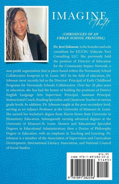 Imagine That! Chronicles of an Urban School Principal gives the reader a peek into the life and struggles of an urban school principal. Though the thought of principal life might be boring or mundane to some, Imagine That! provides an eye-opening perspective that will keep you reading just to see what comes next. For educators particularly, it is the author's hope to show you that you are not alone in the struggle. There are others that are fighting the good fight with you and there are principals that will be on your side. In the end, this book will ignite the fire of grace that we should give our fellow educators on any given day. You never know someone's story or their struggles. We all have them. Imagine That! I'm a real person, with no-frills and no special accolades. I have just held many positions and been charged with many challenges in the field of Education. Everyone THINKS they really know what being an educator is because they had a teacher. Believe me, YOU ARE SO WRONG! My story may be somewhat the same as many principals around the world. But it's MY story. Everyone has one. Welcome into my world, I hope you enjoy the ride!