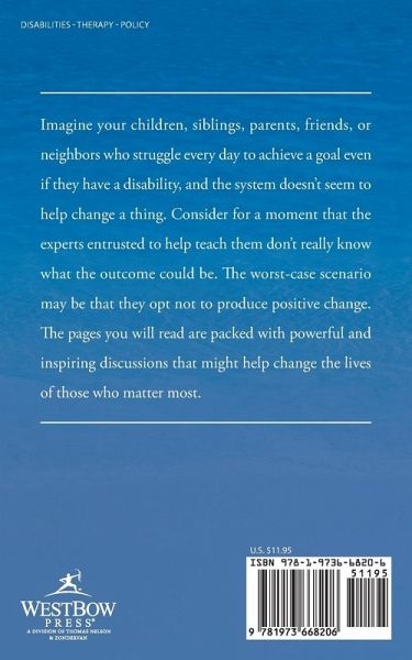 Imagine your children, siblings, parents, friends, or neighbors who struggle every day to achieve a goal even if they have a disability, and the system doesn't seem to help change a thing. Consider for a moment that the experts entrusted to help teach them don't really know what the outcome could be. The worst-case scenario may be that they opt not to produce positive change. The pages you will read are packed with powerful and inspiring discussions that might help change the lives of those who matter most.