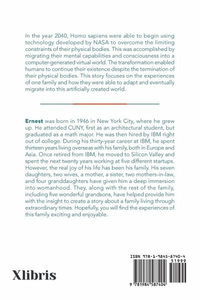 In the year 2040, Homo sapiens were able to begin using technology developed by NASA to overcome the limiting constraints of their physical bodies. This was accomplished by migrating their mental capabilities and consciousness into a computer-generated virtual world. The transformation enabled humans to continue their existence despite the termination of their physical bodies. This story focuses on the experiences of one family and how they were able to adapt and eventually migrate into this artificially created world.