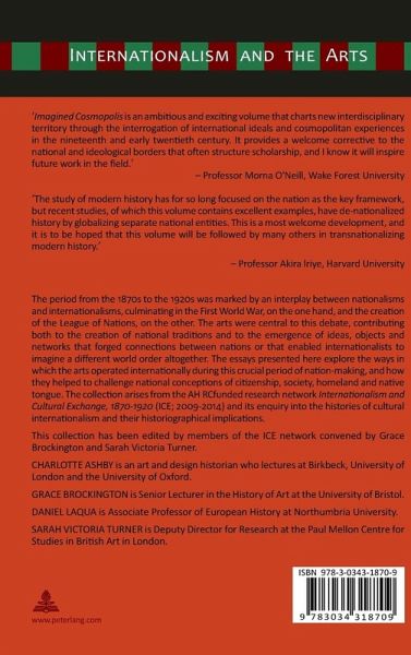 CONTENTS: Grace Brockington/Sarah Victoria Turner: Introduction: Art and Culture Beyond the Nation - Daniel Laqua: Introduction: Cosmopolitanism and the Individual - Jessica Wardhaugh: The Fabulous Destiny of Saint-Patrice: Royalist Cosmopolitanism and Republican France - Sharon Hecker: Navigating International Networks for Modern Sculpture at the Fin de Siècle: The Case of Medardo Rosso - Dina Gusejnova: A Prussian Diplomat and Cosmopolitan: Count Harry Kessler's Cultural Politics during and after the First World War - Marina Dmitrieva: 'Distance Passes through Me': Herwarth Walden, Modernism and the Cosmopolitan Utopia - Charlotte Ashby: Introduction: Cultural Networks and Connections - Christopher Reed: Boston as Museum: Cosmopolitan Constructions of Japan - Vibeke Röstorp: Third Culture Artists: Scandinavians in Paris - Juliet Simpson: Art as Cosmopoetics: Ferdinand Hodler, Mallarmé and La Revue de Geneve - Rosie Ibbotson: Synoptic Outlooks: Cosmopolitan Vision and the Arts and Crafts Movement - Sarah Victoria Turner: Introduction: Real Places and Imagined Journeys - Hervé Inglebert and Sandra Kemp: Universal Histories, Universal Exhibitions and Universal Museums in Europe: Henry Cole and the Legacies of the South Kensington Museum - Marta Filipová: Regional Modernity and the Global Exhibition Network: Prague's Exhibitions of 1891 and 1895 - Wouter Van Acker: World Capital Cities in the Belle Époque: Claiming Centrality through Cosmopolitanism - Charlotte Ashby: European Design Journals as Transnational Spaces - Grace Brockington: Introduction: The Expanded Universal Language Movement - Leonard Bell: Translations: Maori Art Nationalized in Settler-Colonial New Zealand and Internationalized in European Art and Theory - Helena Capková: The Hawk Princess at the Hawk's Well: Neo-Noh and the Idea of a Universal Japan - Katja Krebs: 'So Utterly Foreign to the Spirit of Modern English Drama': Internationalism and Theatrical Relations in London in the Early Twentieth Century - Sophie Hatchwell: 'Acquiring a Foreign Accent': Painting as Cosmopolitan Language in Edwardian Art Writing