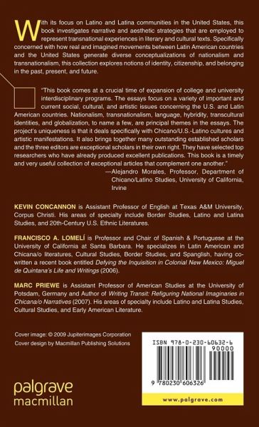 "This book comes at a crucial time of expansion of college and university interdisciplinary programs . . .The essays focus on a variety of important and current social, cultural, and artistic issues concerning the U.S. and Latin American countries. Nationalism, transnationalism, language, hybridity, transcultural identities, and globalization, to name a few, are principal themes in the essays. The project s uniqueness is that it deals specifically with Chicano/U.S.-Latino cultures and artistic manifestations. It also brings together many outstanding established scholars and the three editors are exceptional scholars in their own right. They have selected top researchers who have already produced excellent publications. This book is a timely and very useful collection of exceptional articles that complement one another." - Alejandro Morales, Professor, Department of Chicano/Latino Studies, University of California, Irvine