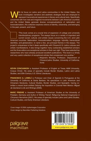 "This book comes at a crucial time of expansion of college and university interdisciplinary programs . . .The essays focus on a variety of important and current social, cultural, and artistic issues concerning the U.S. and Latin American countries. Nationalism, transnationalism, language, hybridity, transcultural identities, and globalization, to name a few, are principal themes in the essays. The project s uniqueness is that it deals specifically with Chicano/U.S.-Latino cultures and artistic manifestations. It also brings together many outstanding established scholars and the three editors are exceptional scholars in their own right. They have selected top researchers who have already produced excellent publications. This book is a timely and very useful collection of exceptional articles that complement one another." - Alejandro Morales, Professor, Department of Chicano/Latino Studies, University of California, Irvine
