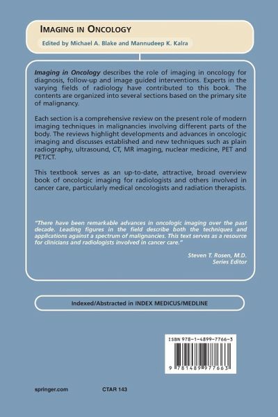 "This 20-chapter ... provides a summary description of imaging in patients with cancer. ... serve as an up to date, broad overview of oncologic imaging for radiologists and all involved in oncologic care, particularly oncologists and radiation therapists. ... present a good overview of state-of-the-art imaging for nonimagers involved in oncologic practice, such as radiation oncologists and medical oncologists. For those individuals, Imaging in Oncology offers valuable insights into the most appropriate and effective use of MRI, CT ... in the evaluation of specific tumors." (H. William Strauss, Journal of the American Medical Association, Vol. 301 (2), 2009)