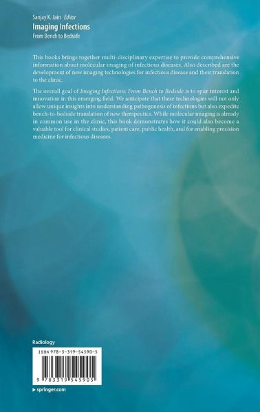 The overall goal of Imaging Infections: From Bench to Bedside is to spur interest and innovation in this emerging field. We anticipate that these technologies will not only allow unique insights into understanding pathogenesis of infections but also expedite bench-to-bedside translation of new therapeutics. While molecular imaging is already in common use in the clinic, this book demonstrates how it could also become a valuable tool for clinical studies, patient care, public health, and for enabling precision medicine for infectious diseases.