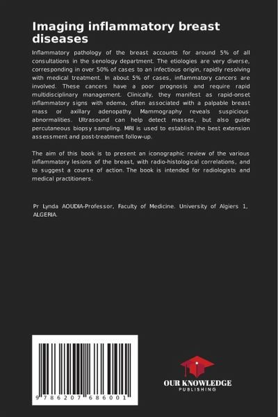 Inflammatory pathology of the breast accounts for around 5% of all consultations in the senology department. The etiologies are very diverse, corresponding in over 50% of cases to an infectious origin, rapidly resolving with medical treatment. In about 5% of cases, inflammatory cancers are involved. These cancers have a poor prognosis and require rapid multidisciplinary management. Clinically, they manifest as rapid-onset inflammatory signs with edema, often associated with a palpable breast mass or axillary adenopathy. Mammography reveals suspicious abnormalities. Ultrasound can help detect masses, but also guide percutaneous biopsy sampling. MRI is used to establish the best extension assessment and post-treatment follow-up.The aim of this book is to present an iconographic review of the various inflammatory lesions of the breast, with radio-histological correlations, and to suggest a course of action. The book is intended for radiologists and medical practitioners.