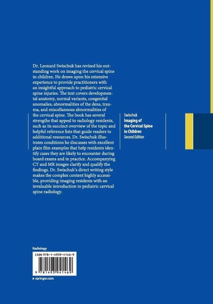 Dr. Leonard Swischuk has revised his outstanding work on imaging the cervical spine in children. He draws upon his extensive experience to provide practitioners with an insightful approach to pediatric cervical spine injuries. The text covers developmental anatomy, normal variants, congenital anomalies, abnormalities of the dens, trauma, and miscellaneous abnormalities of the cervical spine. The book has several strengths that appeal to radiology residents, such as its succinct overview of the topic and helpful reference lists that guide readers to additional resources. Dr. Swischuk illustrates conditions he discusses with excellent plain film examples that help residents identify cases they are likely to encounter during board exams and in practice. Accompanying CT and MR images clarify and qualify the findings. Dr. Swischuk's direct writing style makes the complex content highly accessible, providing imaging residents with an invaluable introduction to pediatric cervical spine radiology.