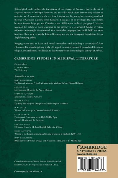 This original study explores the importance of the concept of habitus - that is, the set of acquired patterns of thought, behaviour and taste that result from internalizing culture or objective social structures - in the medieval imagination. Beginning by examining medieval theories of habitus in a general sense, Katharine Breen goes on to investigate the relationships between habitus, language and Christian virtue. While most medieval pedagogical theorists regarded the habitus of Latin grammar as the gateway to a generalized habitus of virtue, reformers increasingly experimented with vernacular languages that could fulfill the same function. These new vernacular habits, Breen argues, laid the conceptual foundations for an English reading public. Ranging across texts in Latin and several vernaculars, and including a case study of Piers Plowman, this interdisciplinary study will appeal to readers interested in medieval literature, religion and art history, in addition to those interested in the sociological concept of habitus.