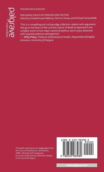 Notes on Contributors Acknowledgements Table of Contents List of Illustrations Introduction: Towards Defining a Poetics of Death in Spenser and Milton; E.J.Bellamy, P.Cheney, & M.C.Schoenfeldt Spenser and the Death of the Queen; A.Hadfield Psychic Deadness in Allegory: Spenser's House of Mammon and Attacks on Linking; T.Krier Death in an Allegory; G.Teskey 'After the First Death, There is No Other': Spenser, Milton, and (Our) Death; R.Kuin and A.L.Prescott Anatomizing Death; L.Gregerson Reading Death and the Ethics of Enjoyment in Spenser and Milton; M.Grossman Sublime / Pauline: Denying Death in Paradise Lost; R.Trubowitz Imagining the Death of the King: Milton, Charles I, and Anamorphic Art; L.L. Knoppers Milton's Nationalism and the Rights of Memory; P.Stevens Afterword: Lastly Death; D.L.Miller Bibliography Index