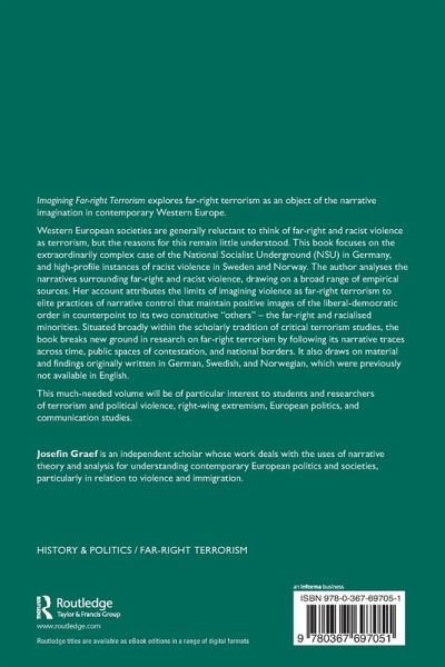 Western European societies are generally reluctant to think of far-right and racist violence as terrorism, but the reasons for this remain little understood. This book focuses on the extraordinarily complex case of the National Socialist Underground (NSU) in Germany, and high-profile instances of racist violence in Sweden and Norway. The author analyses the narratives surrounding far-right and racist violence, drawing on a broad range of empirical sources. Her account attributes the limits of imagining violence as far-right terrorism to elite practices of narrative control that maintain positive images of the liberal-democratic order in counterpoint to its two constitutive "others" - the far-right and racialised minorities. Situated broadly within the scholarly tradition of critical terrorism studies, the book breaks new ground in research on far-right terrorism by following its narrative traces across time, public spaces of contestation, and national borders. It also draws on material and findings originally written in German, Swedish, and Norwegian, which were previously not available in English.