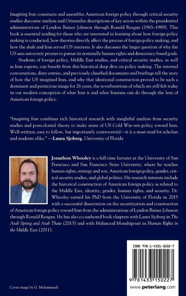 "Jonathon Whooley boldly confronts, with careful and rigorous archival analysis, one of the most important issues of US foreign policy toward the Middle East. He presents a rare and perceptive combination of the construction of American foreign policy toward Iran by deploying the use of specific aspects of foreign policy discourse. By providing a cogent post-structural discourse ontology-deeply rooted in the language of key actors involved-this volume makes a vigorous contribution to critical security studies. «Imagining Iran» is a must-read for anyone concerned about the possibilities of change toward and/or rapprochement with Iran in the region's highly complex and evolving political context." -Mahmood Monshipouri, San Francisco State University, Visiting Professor of the University of California, Berkeley