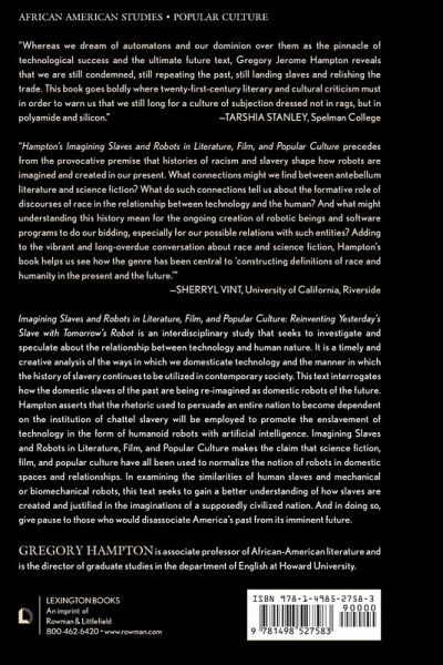 This study examines the relationship between technology and human nature through popular culture. It illustrates how slaves are created and justified in the imaginations of a "civilized" nation, highlighting the ways in which we domesticate technology and the manner in which the history of slavery continues to be utilized in contemporary society.