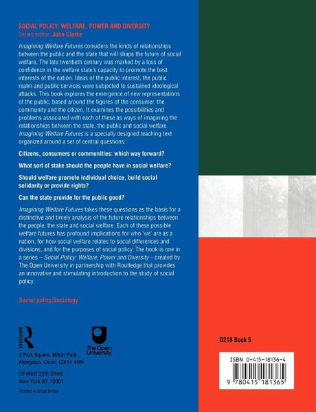 Imagining Welfare Futures explores possible futures of welfare by considering different types of relationship between the public and the state through which social welfare may be organized beyond the millennium. By drawing on contemporary debates about the 'citizen', 'the community' and 'the consumer', the book explores what each of these imaginary figures might mean for the next generation of welfare users.