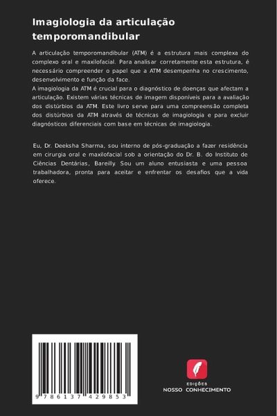 A articulação temporomandibular (ATM) é a estrutura mais complexa do complexo oral e maxilofacial. Para analisar corretamente esta estrutura, é necessário compreender o papel que a ATM desempenha no crescimento, desenvolvimento e função da face.A imagiologia da ATM é crucial para o diagnóstico de doenças que afectam a articulação. Existem várias técnicas de imagem disponíveis para a avaliação dos distúrbios da ATM. Este livro serve para uma compreensão completa dos distúrbios da ATM através de técnicas de imagiologia e para excluir diagnósticos diferenciais com base em técnicas de imagiologia.