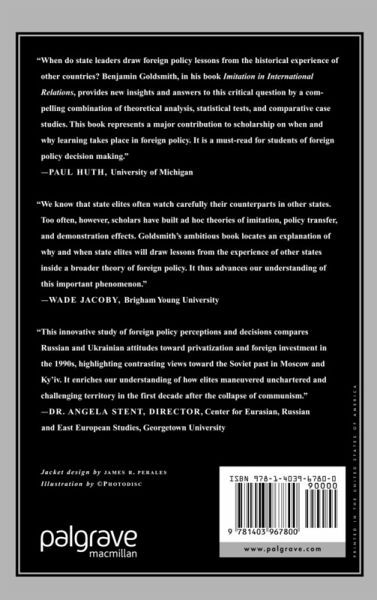 Imitation and emulation are mechanisms of competition in international relations that are theoretically posited but empirically diffuse. Goldsmith provides a trenchant overview of the extant literature and evidence, finding that specification and operationalization problems may explain the disconnect. Providing a distinctive and generalizable approach drawing on concepts from psychology and organizational behavior, this book refines theories of foreign policy to include observational learning to identify when imitation is likely and what behaviors are most imitated. Both statistical and case study methods are used to uncover patterns of analogy usage. Looking at Russia and the Ukraine, Goldsmith increases our understanding of the foreign policies of these two states while also expanding the empirical base of research. By exploring the practical and theoretical significance of learning and imitation, this is an important contribution for foreign policy professionals and scholars.