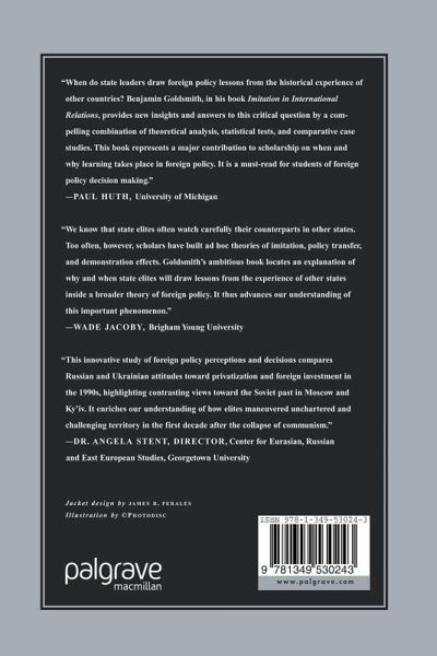 'When do state leaders draw foreign policy lessons from the historical experience of other countries? Ben Goldsmith in his book, Imitation in International Relations, provides new insights and answers to this critical question by a compelling combination of theoretical analysis, statistical tests, and comparative cases studies. This book represents a major contribution to scholarship on when and why learning takes place in foreign policy. This book is a must read for students of foreign policy decision making.' - Paul Huth, University of Michigan, USA