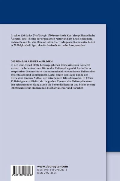 Der vorliegende kooperative Kommentar bietet eine textnahe, fortlaufende Interpretation der "Kritik der Urteilskraft". Für die 3. Auflage anlässlich des 300. Jubiläums Immanuel Kants wurden alle Beiträge überarbeitet und auf den neuesten Forschungsstand gebracht.