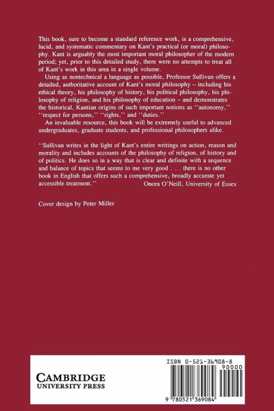 This comprehensive, lucid, and systematic commentary on Kant's practical (or moral) philosophy is sure to become a standard reference work. Kant is arguably the most important moral philosopher of the modern period, yet, prior to this detailed study, there have been no attempts to treat all of his work in this area in a single volume. Using as nontechnical a language as possible, the author offers a detailed, authoritative account of Kant's moral philosophy, including his ethical theory, his philosophy of history, his political philosophy, his philosophy of religion, and his philosophy of education. He also demonstrates the historical, Kantian origins of such important notions as "autonomy," "respect for others," "rights," and "duties."