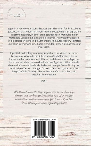 Eigentlich hat Riley Larsson alles, was sie sich immer für ihre Zukunft gewünscht hat. Sie lebt mit ihrem Freund Lucas, einem erfolgreichen Investmentbanker, in einer atemberaubenden Wohnung in der Metropole London mit Blick auf die Themse. Als Projektmanagerin ist sie bereits erfolgreich die Karriereleiter hinaufgestiegen. Heiraten und dann irgendwann eine Familie gründen, stehen als nächstes auf ihrer Liste.Eigentlich sollte Riley rundum glücklich und zufrieden mit ihrem Leben sein. Wären da nicht ihre vielen Geschäftsreisen, die sie immer wieder nach New York führen, und dieser eine Kollege, der ihr schon seit vielen Jahren durch den Kopf geistert. Wäre da nicht die eine kleine entscheidende Sache mit dem perfekten Timing und zur richtigen Zeit am richtigen Ort sein. Denn auch Jake hat schon lange Gefühle für Riley. Aber es hatte einfach nie sollen sein zwischen ihnen beiden.Oder?