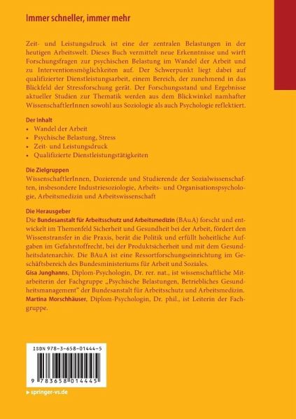 Über die Herausgeberin Die Bundesanstalt für Arbeitsschutz und Arbeitsmedizin (BAuA) forscht und entwickelt im Themenfeld Sicherheit und Gesundheit bei der Arbeit, fördert den Wissenstransfer in die Praxis, berät die Politik und erfüllt hoheitliche Aufgaben im Gefahrstoffrecht, bei der Produktsicherheit und mit dem Gesundheitsdatenarchiv. Die BAuA ist eine Ressortforschungseinrichtung im Geschäftsbereich des Bundesministeriums für Arbeit und Soziales. Gisa Junghanns, Diplom-Psychologin, Dr. rer. nat., ist wissenschaftliche Mitarbeiterin der Fachgruppe "Psychische Belastungen, Betriebliches Gesundheitsmanagement" der Bundesanstalt für Arbeitsschutz und Arbeitsmedizin. Martina Morschhäuser, Diplom-Psychologin, Dr. phil., ist Leiterin der Fachgruppe.