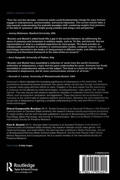 "Over the next few decades, immersive media could fundamentally change the ways humans engage in entertainment, communication, and social interaction. The current volume takes a step towards understanding this potential paradigm shift, combining insights from pioneers of the field of 'presence' with bright young scholars who bring a new perspective." -Jeremy Bailenson, Stanford University, USA