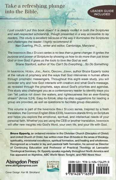 Journey inside the pages of Scripture to meet a personal God who enters individual lives and begins a creative work from the inside out. Shaped with the individual in mind, Immersion encourages simultaneous engagement both with the Word of God and with the God of the Word to become a new creation in Christ. Immersion, inspired by a fresh translation--the Common English Bible--stands firmly on Scripture and helps readers explore the emotional, spiritual, and intellectual needs of their personal faith. More importantly, they'll be able to discover God's revelation through readings and reflections. Hosea, Joel, Amos, Obadiah, Jonah has eight sessions.