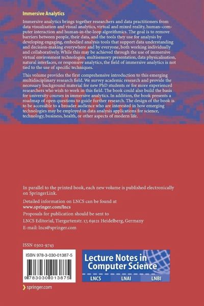 Immersive Analytics is a new research initiative that aims to remove barriers between people, their data and the tools they use for analysis and decision making. Here the aims of immersive analytics research are clarified, its opportunities and historical context, as well as providing a broad research agenda for the field. In addition, it is reviewed how the term immersion has been used to refer to both technological and psychological immersion, both of which are central to immersive analytics research.