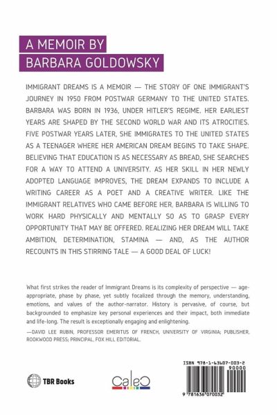 Immigrant Dreams is a memoir -- the story of one immigrant's journey in 1950 from postwar Germany to the United States. Barbara was born in 1936, under Hitler's regime. Her earliest years are shaped by the Second World War and its atrocities. Five postwar years later, she immigrates to the United States as a teenager where her American dream begins to take shape. Believing that education is as necessary as bread, she searches for a way to attend a university. As her skill in her newly adopted language improves, the dream expands to include a writing career as a poet and a creative writer. Like the immigrant relatives who came before her, Barbara is willing to work hard physically and mentally so as to grasp every opportunity that may be offered. Realizing her dream will take ambition, determination, stamina -- and, as the author recounts in this stirring tale -- a good deal of luck.