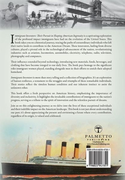 Discover the Untold Stories of Immigrant Innovators: Their Struggles, Triumphs, and Pivotal Role in Shaping America's Technological Landscape. In the pages of Immigrant Inventors: Their Pursuit in Shaping American Ingenuity, you'll journey through the annals of history, tracing the footsteps of the remarkable men and women who left their homelands to contribute to the American Dream. These immigrants, from diverse backgrounds and cultures, played a crucial role in the development of the United States, their innovative minds birthing advancements in aviation, locomotion, automobiles, electricity, telephone, radio, television, photography and computers. Their contributions didn't stop at technology. They introduced new materials, foods, beverages, and clothing, shaping the everyday life we often take for granted. Among these pioneers, immigrant women stood shoulder to shoulder with men, their roles equally significant in the enrichment of their adopted country. This book is more than a collection of biographies. It's a voyage of discovery, a narrative of human resilience and ingenuity. Each profile, each story, is a testament to the struggles and triumphs of these extraordinary individuals. Their journeys, fraught with challenges, are a reflection of the timeless human condition and our instinctive desire to aid the unknown other. Immigrant Inventors offers a fresh perspective on the narrative of American history. It underscores the importance of diversity and inclusivity, highlighting the invaluable contributions of immigrants to the nation's progress. This book is a tribute to the spirit of innovation and the relentless pursuit of dreams, reminding us of the true values that make America what it is today. Join us on this enlightening journey, as we delve into the lives of these remarkable individuals and their indelible impact on the American landscape. This book is not only about understanding our past; it's about appreciating the present and envisioning a future where every contribution, no matter where it originates, is valued and celebrated.