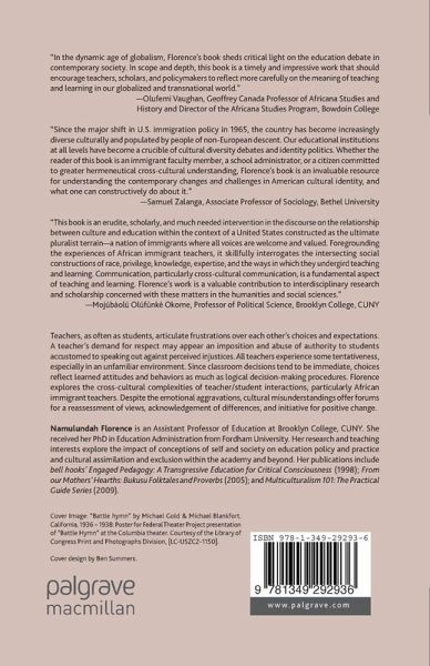 "This book is an erudite, scholarly, and much needed intervention in the discourse on the relationship between culture and education within the context of a United States constructed as the ultimate pluralist terrain - a nation of immigrants where all voices are welcome and valued. Foregrounding the experiences of African immigrant teachers, it skillfully interrogates the intersecting social constructions of race, privilege, knowledge, expertise, and the ways in which they undergird teaching and learning. Communication, particularly cross-cultural communication, is a fundamental aspect of teaching and learning. Namulundah s work is a valuable contribution to interdisciplinary research and scholarship concerned with these matters in the humanities and social sciences." - Mojúbàolú Olúfúnké Okome, Professor of Political Science, Brooklyn College, CUNY