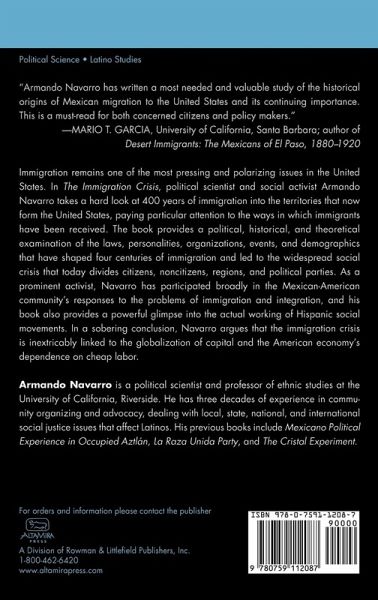 Political scientist and social activist Armando Navarro takes a hard look at four hundred years of immigration into the territories that now form the United States, paying particular attention to the ways in which immigrants have been received. The book provides a political, historical, and theoretical examination of the laws, personalities, organizations, events, and demographics that have shaped four centuries of immigration and led to the widespread social crisis that today divides citizens, non-citizens, regions, and political parties.