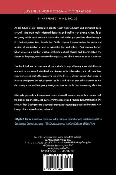 Aiming to generate a discussion on immigration with factual and contemporary information, real life stories, experiences, and quotes from teenagers and young adults, Immigration: The Ultimate Teen Guide presents a comprehensive and engaging approach to informing readers about the varied ways immigration is experienced, viewed, and disputed.