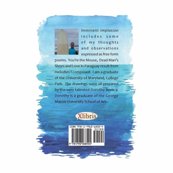 Imminent Implosion includes some of my thoughts and observations expressed as free form poems. You're the Mouse, Dead Man's Shoes and Love in Paraguay result from melodies I composed. I am a graduate of the University of Maryland, College Park. The drawings were all prepared by the very talented Dorothy Bonica. Dorothy is a graduate of the George Mason University School of Art.