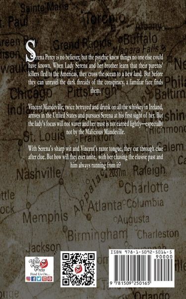 Serena Percy is no believer, but the psychic knew things no one else could have known. When Lady Serena and her brother learn that their parents' killers fled to the Americas, they cross the ocean to a new land. But before they can unravel the dark threads of the conspiracy, a familiar face finds them. Vincent Mandeville, twice betrayed and drunk on all the whiskey in Ireland, arrives in the United States and pursues Serena at his first sight of her. But the lady's focus will not waver and her trust is not earned lightly-especially not by the Malicious Mandeville. With Serena's sharp wit and Vincent's razor tongue, they cut through clue after clue. But how will they ever unite, with her chasing the elusive past and him always running from it?