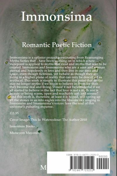 Immonsima is a splinter project germinating from Rearranging Myths Series that I have been working on in which a new viewpoint is applied to myths that exist and myths that wait to be created. Immonsim and Immonsima who are a man and woman eternal and hopelessly in love and they live in our time and space, even though fictitious, yet behave as though they are living in a higher plane of reality that can only be described as mythical. This work is simply to illustrate this point that myths stay no longer myths if we begin to believe in them for then they become real and living. Would it not be wonderful if we all started to believe in the fact that love is not a myth nor is beauty or being warm, open and reachably soft and serene? And this myth is, therefore, at least it is hoped, will spring up all the stones in us into eagles into the liberate sky singing in Immonsim and Immonsima's voices: love the soul of this universe's pulsating expanse.