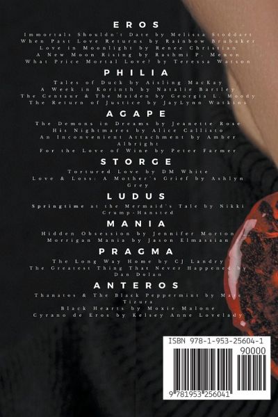 The Greeks have eight forms of love, and the gods of Olympus will have to face them all... Thanatos and the Black Peppermint by Marc Tizura Thanatos, God of Death, has always loved peppermint. A long time ago, after a reaping in Paris, he was gifted with a small bundle of heart-shaped black peppermints. They instantly became his favorites. There was no note attached to the package Hermes brought, just a simple tag with the words Made with Love. An Inconvenient Attachment by Amber Albright Everything seems to be going well until Erebus goes missing. Soon Atë will learn that old enemies hold grudges a lot longer than gods do. Will she save him in time and finally admit the feelings she has been hiding, or will the Goddess of Ruin lose the one person she can't live without? The Greatest Thing That Never Happened To Me by Dan Dolan The black sheep, the eternal outcast even among the ne'er-do-well Olympians, Eris never fully fit in. This is the story of them finding the first person to ever truly accept them for who and what they are and then losing her. This is the story of Eris' ruin. Demon in Dreams by Jeanette Rose Finally, after three thousand years of being apart, Eros, God of Love and Sex, has reunited with his treasured wife. Will he be able to save his newly returned love from the demons that lurk in his dreams, or will he end up alone again? His Nightmares by Alice Callisto Clio, the Muse of History, is finally reunited with her soulmate after three thousand years, but something sinister is threatening to tear them apart. Everything is going fine until Clio discovers her husband's nightmares. Now, she has to free him from the grip of the past or lose him forever. Hidden Obsession by Jennifer Morton When Medusa has an admirer, she thinks it's harmless. Is it just a sweet crush or something more sinister? The Return of Justice by JayLynn Watkins Dikê is summoned back to the world, one far worse off than she left it. Getting caught up on the history was the simple part. Through connection, love, and passion, she's offered a chance to bring about Justice without violence. Can a true believer teach an old goddess new tricks? A Week in Korinth by Natalie Bartley Amphitrite goes looking for Poseidon after a thousand years of him being missing. When she travels to Korinth, she meets a young woman, a young man, and someone who both infuriates and captivates her. Will Amphitrite help her new companions find peace and happiness, the one thing she's currently lacking? Will she stay on the surface, abandoning her home? Or will she give up her own chance at love again and return to the cold, lonely depths of the sea? New Moon Rising by Rashmi P. Menon After Apollo tricked Artemis into slaying Orion, she had abandoned her twin and sworn off love for eternity. Instead, she chose a solitary life in the woods. An encounter with the Titan of the Moon, Selene, at a party leaves Artemis questioning her decisions. Can she finally forgive Apollo and make peace with her loss? For the Love of Wine by Peter Farmer When Dionysos is on the move, it is with complete purpose or completely without. On the way to Napa for business, Dion decides to call upon a list of threes. One of the three local vineyards that are on the list will get a surprise like no other. Will Dion make the right choice?