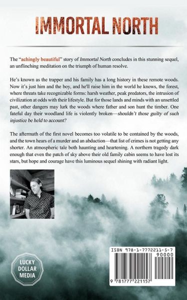 The "achingly beautiful" story of Immortal North concludes in this stunning sequel, an unflinching meditation on the triumph of human resolve. ***** A Readers' Favorite Five Star Author ***** ***** Shelf Unbound 2022 Best Indie Book Notable Author ***** ***** 2020 Canada Book Awards Winning Author ***** He's known as the trapper and his family has a long history in these remote woods. Now it's just him and the boy, and he'll raise him in the world he knows, the forest, where threats take recognizable forms: harsh weather, peak predators, the intrusion of civilization at odds with their lifestyle. But for those lands and minds with an unsettled past, other dangers may lurk the woods where father and son hunt the timber. One fateful day their woodland life is violently broken-shouldn't those guilty of such injustice be held to account? The aftermath of the first novel becomes too volatile to be contained by the woods, and the town hears of a murder and an abduction-that list of crimes is not getting any shorter. An atmospheric tale both haunting and heartening. A northern tragedy dark enough that even the patch of sky above their old family cabin seems to have lost its stars, but hope and courage have this luminous sequel shining with radiant light.