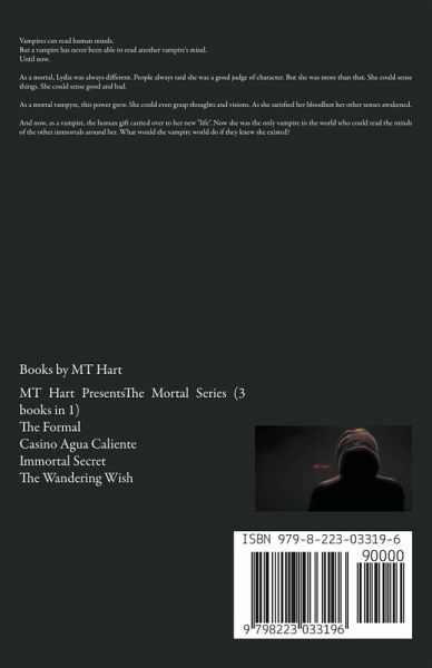 Vampires can read human minds. But a vampire has never been able to read another vampire's mind. Until now. As a mortal, Lydia was always different. People always said she was a good judge of character. But she was more than that. She could sense things. She could sense good and bad. As a mortal vampyre, this power grew. She could even grasp thoughts and visions. As she satisfied her bloodlust her other senses awakened. And now, as a vampire, the human gift carried over to her new "life". Now she was the only vampire in the world who could read the minds of the other immortals around her. What would the vampire world do if they knew she existed?