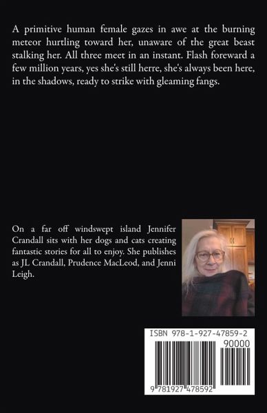 A primitive human female gazes in awe at the burning meteor hurtling toward her, unaware of the great beast stalking her. All three meet in an instant. Flash foreward a few million years, yes she's still herre, she's always been here, in the shadows, ready to strike with gleaming fangs.