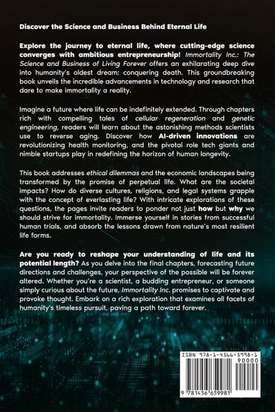 Discover the Science and Business Behind Eternal Life Explore the journey to eternal life, where cutting-edge science converges with ambitious entrepreneurship! Immortality Inc.: The Science and Business of Living Forever offers an exhilarating deep dive into humanity's oldest dream: conquering death. This groundbreaking book unveils the incredible advancements in technology and research that dare to make immortality a reality. Imagine a future where life can be indefinitely extended. Through chapters rich with compelling tales of cellular regeneration and genetic engineering, readers will learn about the astonishing methods scientists use to reverse aging. Discover how AI-driven innovations are revolutionizing health monitoring, and the pivotal role tech giants and nimble startups play in redefining the horizon of human longevity. This book addresses ethical dilemmas and the economic landscapes being transformed by the promise of perpetual life. What are the societal impacts? How do diverse cultures, religions, and legal systems grapple with the concept of everlasting life? With intricate explorations of these questions, the pages invite readers to ponder not just how but why we should strive for immortality. Immerse yourself in stories from successful human trials, and absorb the lessons drawn from nature's most resilient life forms. Are you ready to reshape your understanding of life and its potential length? As you delve into the final chapters, forecasting future directions and challenges, your perspective of the possible will be forever altered. Whether you're a scientist, a budding entrepreneur, or someone simply curious about the future, Immortality Inc. promises to captivate and provoke thought. Embark on a rich exploration that examines all facets of humanity's timeless pursuit, paving a path toward forever.