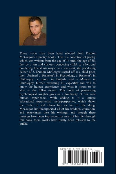 These works have been hand selected from Damon McGregor's 5 poetry books. This book of penetrating psychological insights gives us a familiarity of our own human experiences, while adding to it a unique educational experiential meta-perspective, which draws the reader in and allows him or her to ride along. McGregor has incorporated all of his wisdom, education, and experiences into his writings, and though these writings have been kept secret for most of his life, through this book these works have finally been released to the public.
