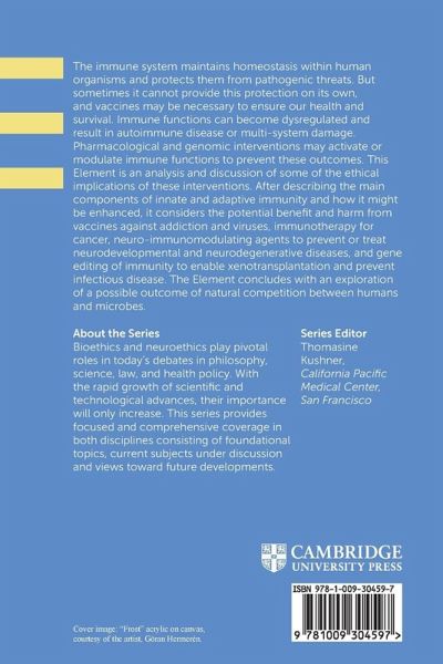 This Element considers the potential benefit and harm from vaccines against addiction and viruses, immunotherapy for cancer, neuro-immunomodulating drugs to prevent or treat neurodevelopmental and neurodegenerative diseases, and gene editing of immunity to enable xenotransplantation and prevent infectious disease.