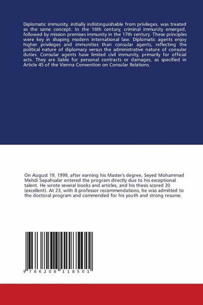 Diplomatic immunity, initially indistinguishable from privileges, was treated as the same concept. In the 16th century, criminal immunity emerged, followed by mission premises immunity in the 17th century. These principles were key in shaping modern international law. Diplomatic agents enjoy higher privileges and immunities than consular agents, reflecting the political nature of diplomacy versus the administrative nature of consular duties. Consular agents have limited civil immunity, primarily for official acts. They are liable for personal contracts or damages, as specified in Article 45 of the Vienna Convention on Consular Relations.
