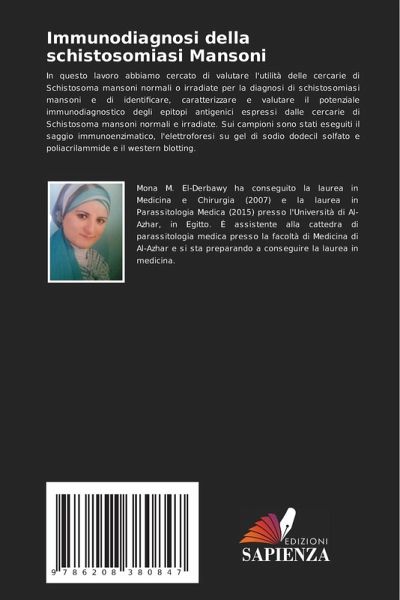 In questo lavoro abbiamo cercato di valutare l'utilità delle cercarie di Schistosoma mansoni normali o irradiate per la diagnosi di schistosomiasi mansoni e di identificare, caratterizzare e valutare il potenziale immunodiagnostico degli epitopi antigenici espressi dalle cercarie di Schistosoma mansoni normali e irradiate. Sui campioni sono stati eseguiti il saggio immunoenzimatico, l'elettroforesi su gel di sodio dodecil solfato e poliacrilammide e il western blotting.